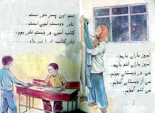 در رو زدیم و یه آقای میانسال که بعدها فهمیدم بهش میگن، بابای مدرسه، در باز کرد. یادم نیست سلام کردم یا نه. نگذاشت مادرم همراهم بیاد توی مدرسه، خیلی خیلی ترسیده بودم و توی ذهنم هزارتا فکر بد و ترسناک گذشت، که بدترینشون این بود که دیگه هیچوقت از مدرسه بیرون نمیام و تا همیشه پدر و مادر و خانوادهام رو نمیبینم. بغض کردم و آروم آروم شروع کردم به گریه کردن و اینقدر ادامه داشت که به هقهق افتادم. نفسم بریده بریده شد. تا وقتی به وسط حیاط رسیدم، سر پایین بود و خدا خدا میکردم، معجزه بشه و برگردم پیش مادرم. با صدای بلند و خشدار آقایی که دم در از مادرم جدام کرد به خودم اُمدم. حیاط مدرسه پُر بود از بچههای همسن و سال خودم. ترسم کمتر شد اما دلهره داشتم، که این همه بچه قرار هیجوقت خانوادههاشون رو نبیند!