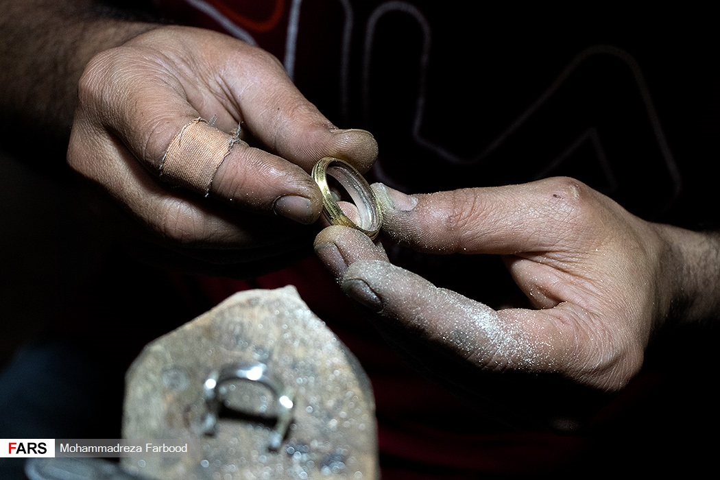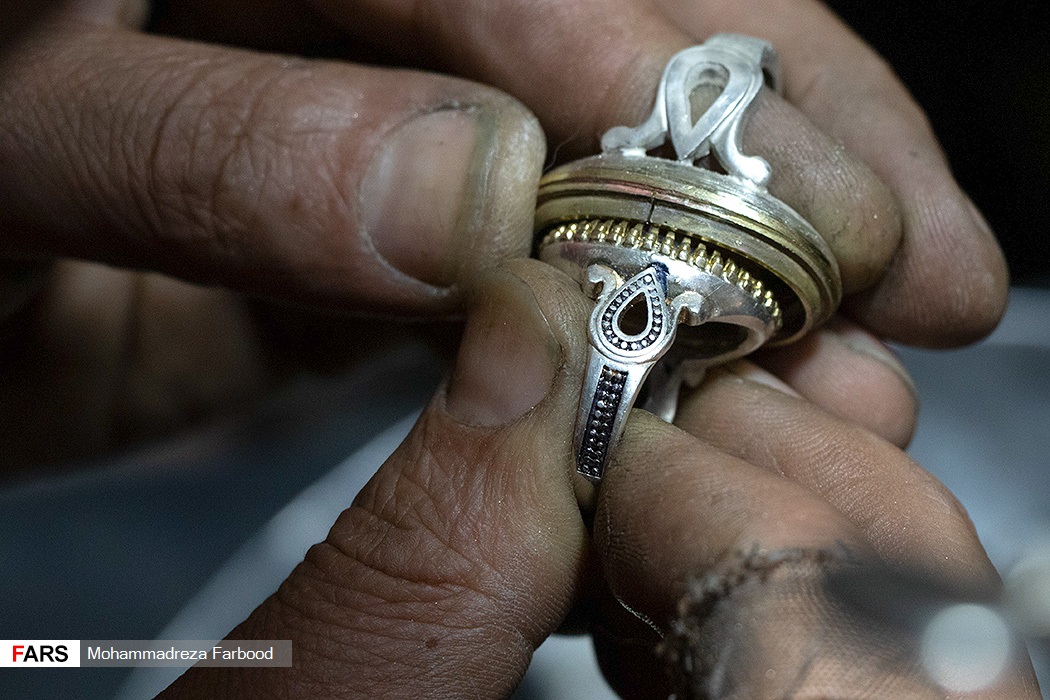 دیدارنیوز - روش سنتی ساخت انگشتر هنوز در کارگاه ها مرسوم است و بر خلاف روش‌های ماشينی، هم نيروی كار و هم زمان بيشتری می خواهد. نخستين گام برای شكل‌گيری يك انگشتر اين است كه‌ مدل‌های انگشتر بنا به طرحی كه از پيش آماده شده، در قالب ماسه‌‌تر طراحی می شود. بعد از اينكه قالب‌ها آماده شد نقره را در بته‌چينی ذوب و بعد آن را در قالب ریخته و پس از سرد شدن آن را از قالب جدا می كنند. سوهان کاری انگشترها مرحله حساسی است که باید با دقت انجام گیرد. برای سوهان کاری معمولا ‌ از سوهان معمولی استفاده می‌شود که قسمت‌های ضخیم رکاب را با آن سوهان می‌زنند. قسمت‌های ظریف و گوشه‌های ریز رکاب هم با موتور سمباده صیقل پیدا می‌کند.مخراج کاری آخرین مرحله از ساخت انگشتر است که سنگ سفارش داده شده بر رکاب سوار می‌شود و اگر طرح خاصی نیاز باشد همان موقع با اره و دستگاه فرز روی رکاب نقش بسته می‌شود.بعد از آن انگشترها سایز می‌شوند تا به‌دست سفارش‌دهنده بنشینند.
