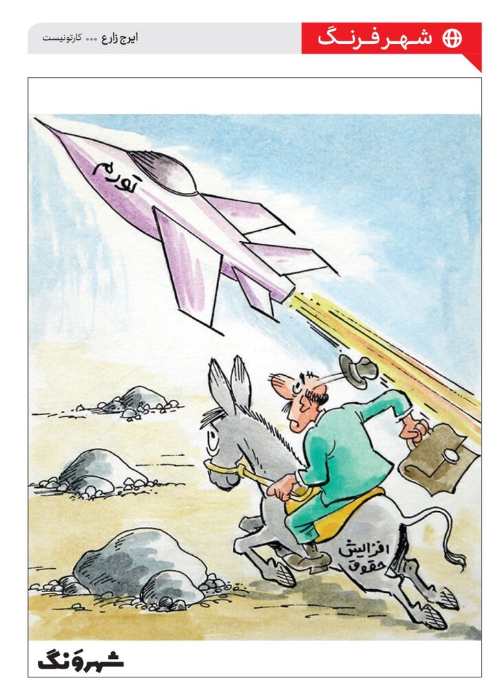 صفحه طنز و کارتون شهرونگ با انتشار کارتونی از ایرج زارع به وضعیت معیشتی مردم و عدم تناسب تورم و افزایش حقوق و دستمزدها پرداخت.