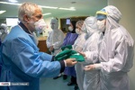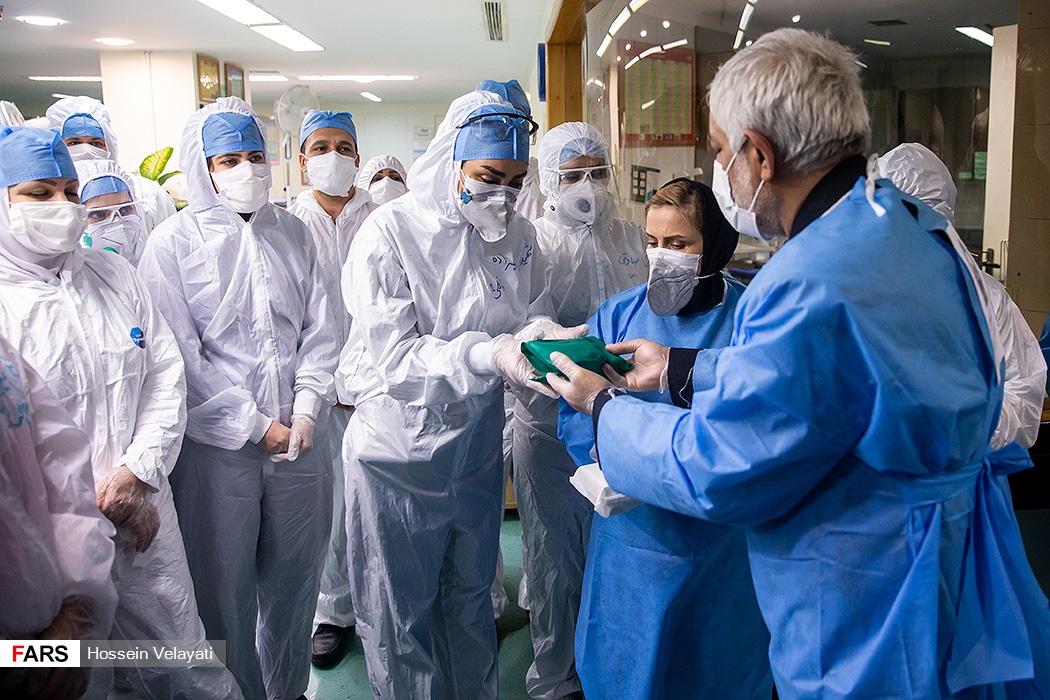 خادمان امام رضا (ع) با حمل پرچم متبرک حرم رضوی ظهر سه‌شنبه ۵ فروردین ۱۳۹۸ با حضور در بیمارستان میلاد تهران از بیماران کرونایی این مرکز عیادت کردند.