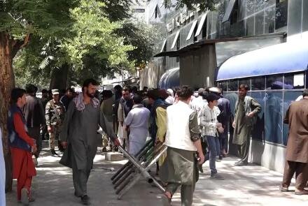 بعد از آنکه طالبان موفق شده اکثریت شهرهای افغانستان را تحت مالکیت خود درآورد و با توجه به اینکه ارزش ملی واحد پول افغانستان در مقابل دلار سقوط کرده مردم برای بیرون کشیدن پولهای خود به بانکها حمله کردند.