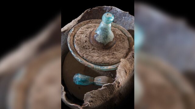 باستانشناسان همچنین تکههایی از پارچه و دو بطری شیشهای را که بیشتر با نام «Unguentarium» شناخته میشوند در مقبره این مرد کشف کردهاند. این نوع ظروف شیشهای معمولا در قبرستانهای رومی و یونانی کشف میشوند و معمولا حاوی روغن و عطرهایی هستند که در مراسم ترحیم مورد استفاده قرار میگیرند.
