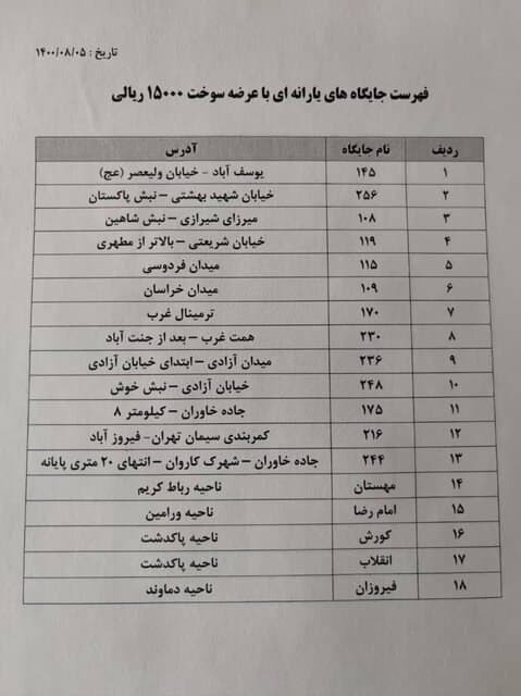 کدام جایگاه‌ها در تهران بنزین ۱۵۰۰ تومانی عرضه می‌کنند؟
