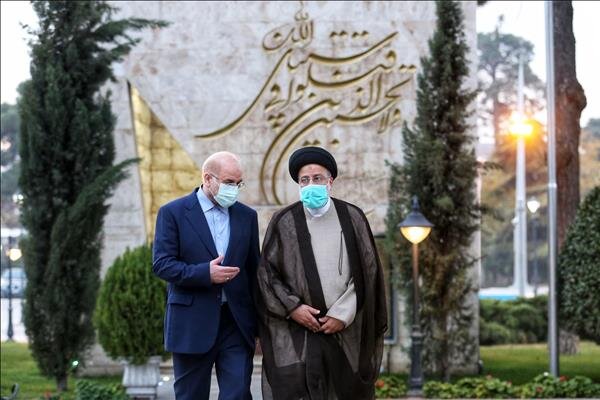 پیش از شروع نشست مجلس و دولت، محمدباقر قالیباف به استقبال رئیس جمهور رفت.