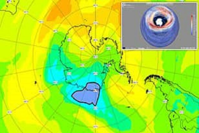 اندازه حفره سالانه لایه ازون که در تابستان نیمکره جنوبی شکل میگیرد، به شدت به شرایط آب و هوایی وابسته است و در اثر سرما افزایش مییابد.