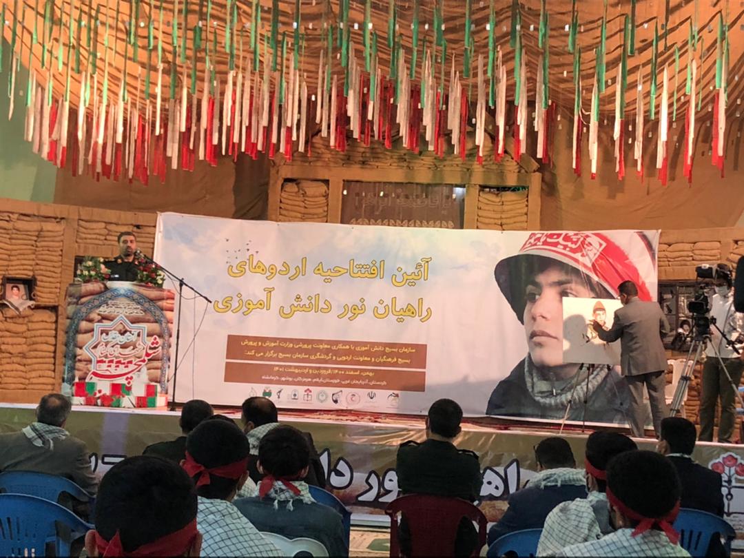به گزارش دیدارنیوزخوزستان، طی آئینی با حضور فرمانده قرارگاه راهیان نور و جانشین سازمان بسیج، مسئول بسیج دانش آموزی کشور، مشاور وزیر آموزش و پرورش، مدیرکل آموزش و پرورش استان خوزستان و جمعی از فرماندهان نظامی، مسئولان و دانش آموزان، فعالیت اردوهای راهیان نور دانش آموزی امروز (یکشنبه ۲۶ دی) به همت سازمان بسیج دانش آموزی با همکاری معاونت پرورشی وزارت آموزش و پرورش، بسیج فرهنگیان و معاونت اردویی و گردشگری سازمان بسیج کشور در یادمان مشهد شهدای شلمچه افتتاح شد.