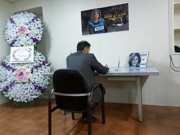سعید خطیب‌زاده امروز با حضور در محل سفارت فلسطین در تهران دفتر یادبود خبرنگار شهید فلسطینی، شیرین ابوعاقله را امضا کرد.