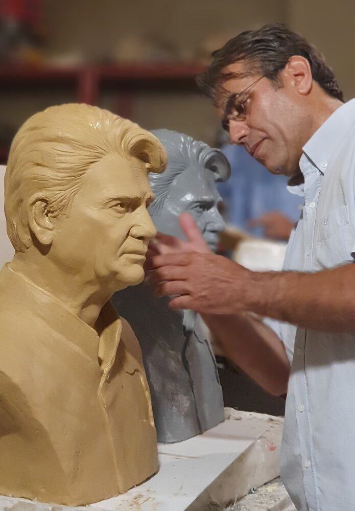 دیدارنیوز ـ امیر باقری، هنرمند مجسمهساز که شش سال است در ترکیه به سر میبرد، ساخت سردیس استاد محمدرضا شجریان را از سال گذشته در شهر آلانیای این کشور آغاز کرد. او که این روزها در شیراز است، میخواهد این سردیس ساختهشده از فایبرگلاس را با برنز قالبگیری کند و سپس شاهد رونمایی از آن در باغ هنر بم باشد؛ مکانی که کلید ساخت آن پس از زلزله دلخراش بم و سپس برگزاری کنسرت «همنوا با بمِ» شجریان به همت خسروی آواز ایران زده و سرانجام دی ۱۳۹۷ راهاندازی شد.