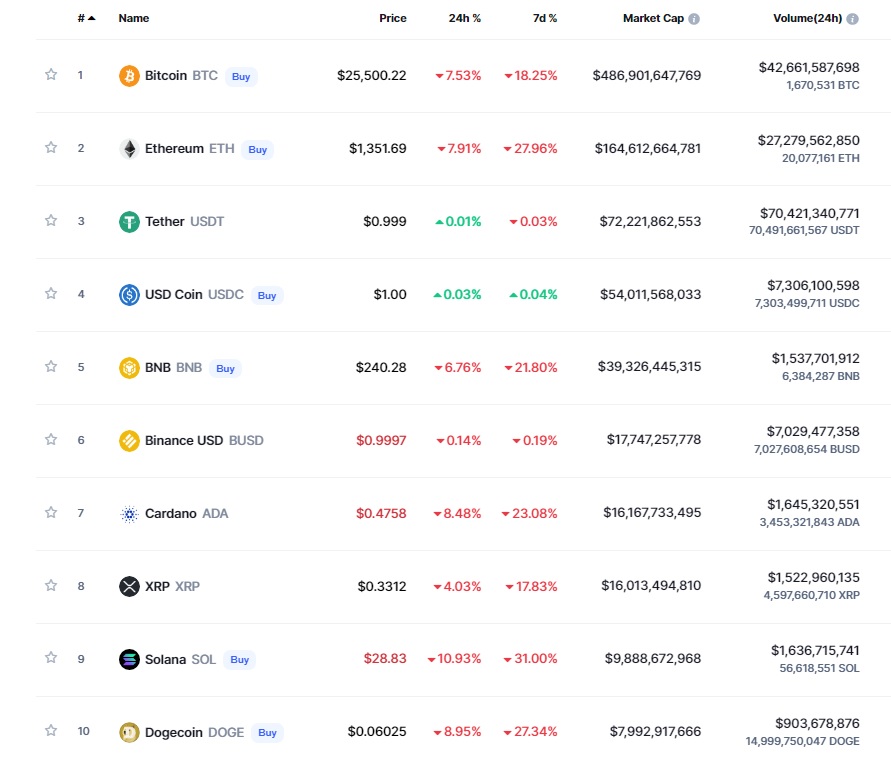 وضعیت سایر ارزهای دیجیتال هم چندان خوب نیست و بازار قرمزپوش شده است. باید منتظر ماند و دید این روند حرکت نزولی تا چه زمان ادامه دارد و آیا شاهد بیتکوین با قیمت زیر ۲۰ هزار دلار خواهیم بود یا خیر؟