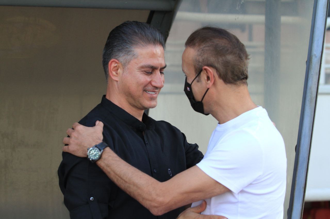 خوش و بش یحیی گلمحمدی و حمید مطهری پیش از آغاز بازی دوستانه امروز