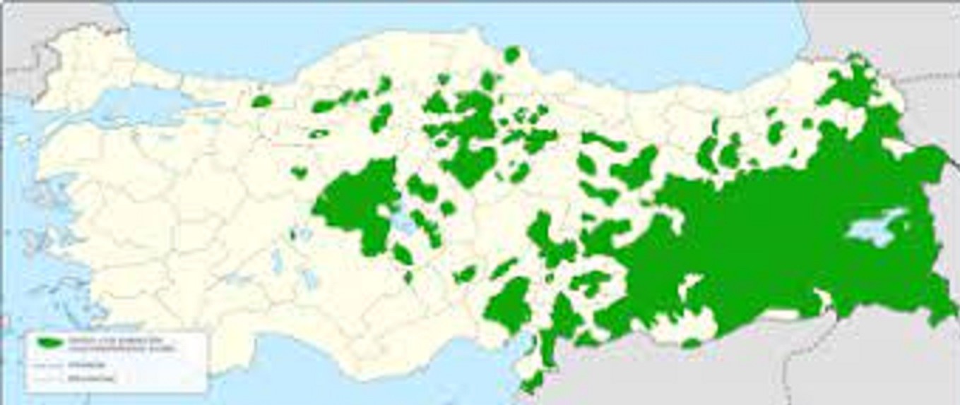 نقاطی که با رنگ سبز مشخص شده شهرهای کردنشین ترکیه هستند
