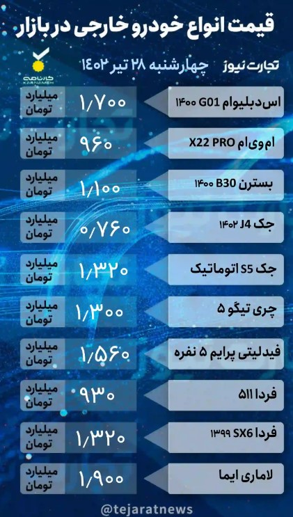 قیمت خودرو امروز ۲۸ تیر ۱۴۰۲ با شوک عجیبی رو به کاهش گذاشت. برخی از خودروها از جمله پژو ۲۰۶ کاهشهای چند ده میلیونی داشته و برخی دیگر، به ثبات قیمتی اکتفا کردند.