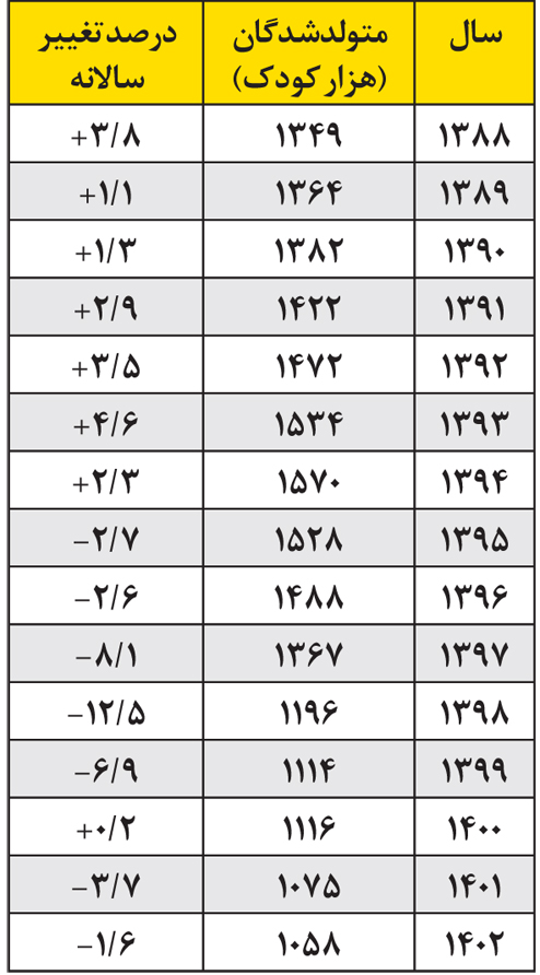 ۲ـ ایراد مهمتر این است که این مقایسه را با سال ۱۳۹۷ و ۱۳۹۸ انجام دادهاند، در حالی که باید با سال ۱۳۹۹ و ۱۴۰۰ یعنی سال پیش از اجرای قانون و آمدن این دولت انجام میدادند. تعداد متولدین در سال ۱۴۰۰ اندکی بیش از ۱۳۹۹ بوده، بنابراین پیش از آمدن این دولت و این قانون، روند کاهشی متوقف شده بود. ولی در دو سال اخیر دو باره روند کاهشی شدت گرفته است. تعداد متولدین در ۱۵ سال اخیر به شرح زیر است: