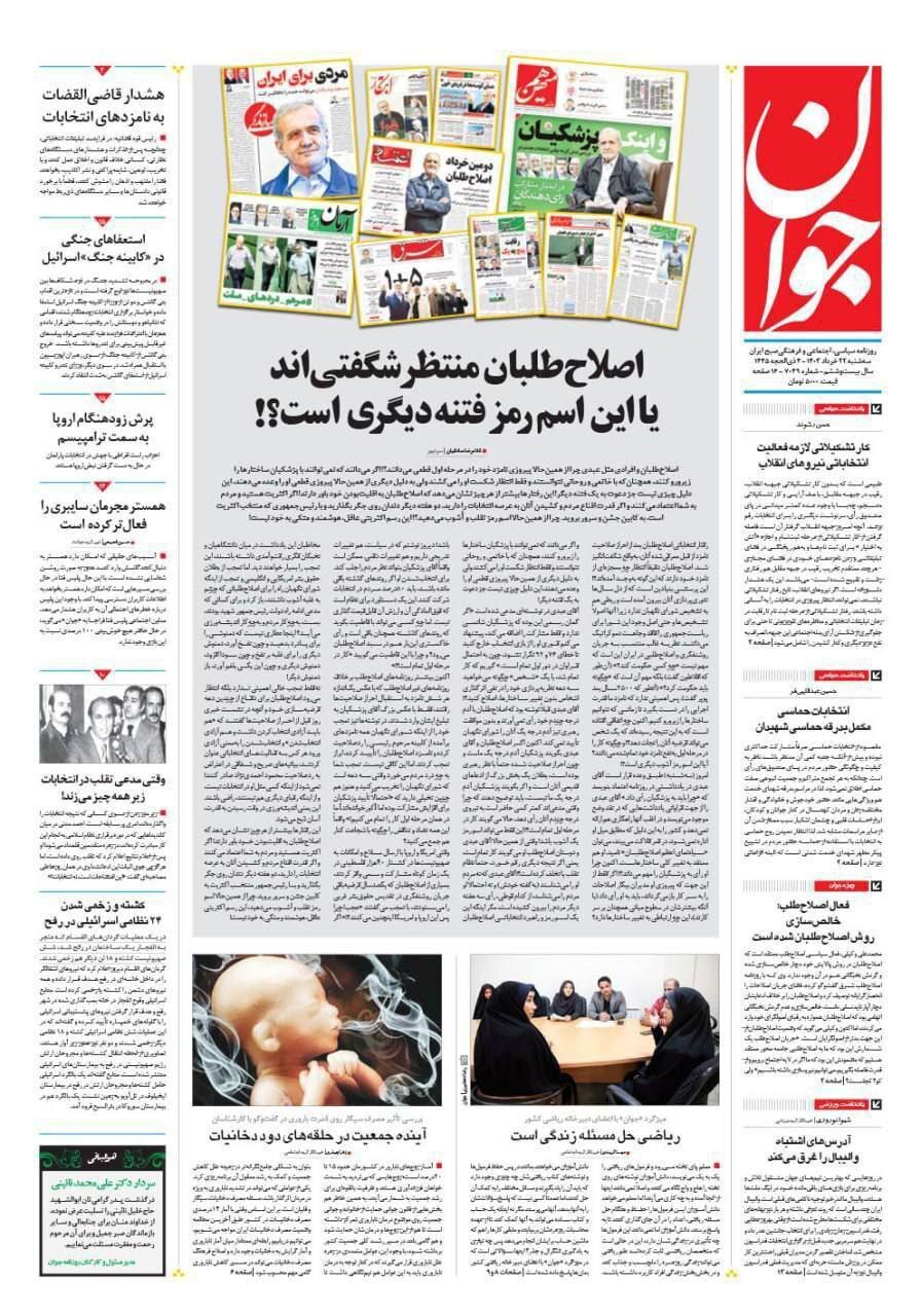 ساعت: ۱۲:۵۸/ تیتر روزنامه اصولگرای جوان علیه پزشکیان؛ فتنهای دیگر در راه است!