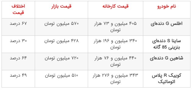مقایسه قیمت خودروهای داخلی بین بازار و کارخانه