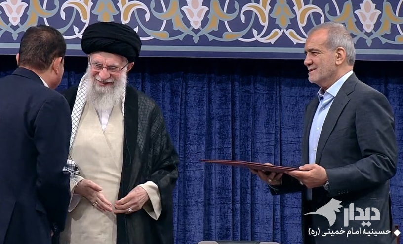حضرت آیتالله خامنهای، رهبر معظم انقلاب اسلامی صبح امروز (یکشنبه) در مراسمی و بر اساس بند ۹ اصل ۱۱۰ قانون اساسی رأی ملت ایران به آقای مسعود پزشکیان را تنفیذ و ایشان را بهعنوان رئیس جمهور اسلامی ایران منصوب کردند.