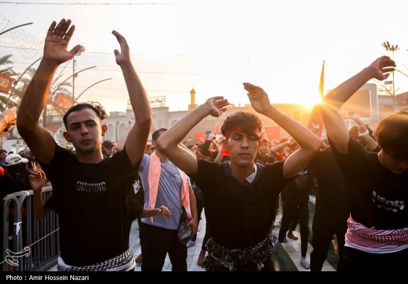 زائرین اباعبدالله الحسین(ع) با فرا رسیدن اربعین حسینی در میعادگاه خود، بین الحرمین و حرم ابوالفضل العباس(ع) و اباعبدالله الحسین(ع) حاضر شدند و به عزاداری پرداختند. عکس: امیرحسین نظری