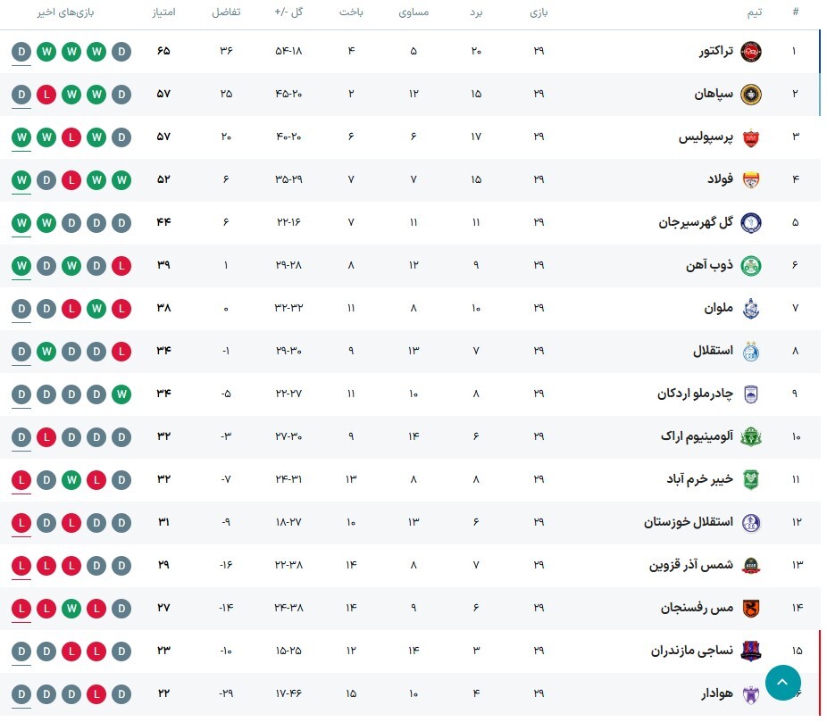 در تهران، سپاهان زورش به هوادار قعر جدولی و سقوط کرده نرسید و دو تیم به تساوی یک بر یک رسیدند. سپاهان با این توقف، ۵۷ امتیازی شد و در رده دوم باقی ماند، اما .. پرسپولیس را هم امتیاز با خود میبیند و هفته آخر لیگ برای کسب سهمیه آسیایی بین این دو تیم حسابی داغ و تماشایی میشود!