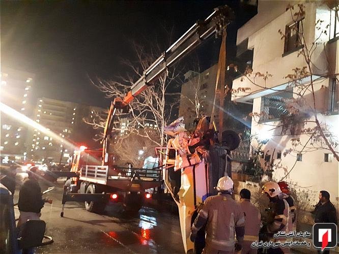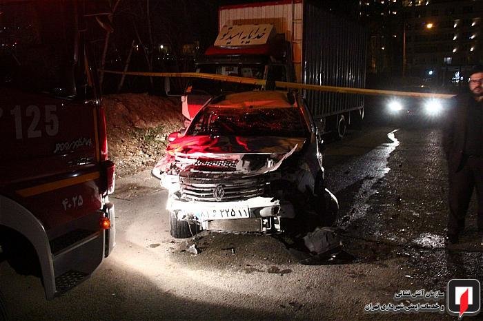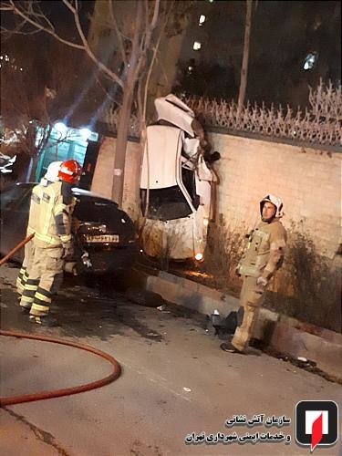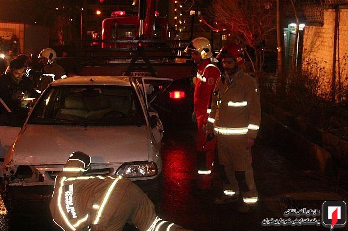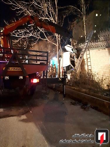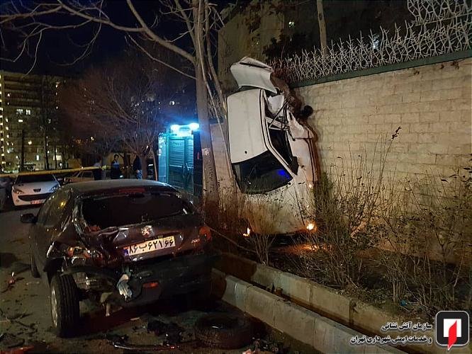 شدت برخورد خودرو ها با یکدیگر به حدی بود که خودروی پراید پارک شده پس از برخورد با خودروی ۲۰۶ مقابل خود به بالای دیوار منزل مجاور منتقل شده بود و آتش نشانان با استفاده از جرثقیل و تجهیزات ویژه نجات اقدام به رهاسازی و انتقال آن به محلی امن کردند.