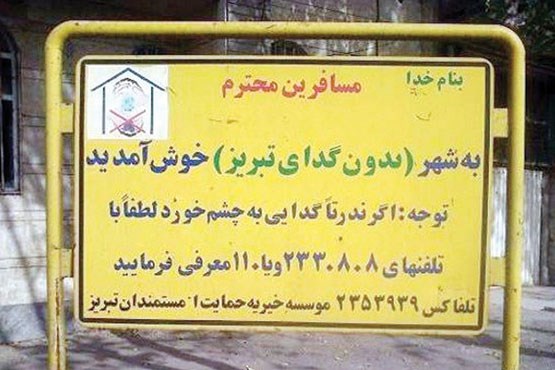 دلیل کم بودن تعداد متکدیان تبریز را شاید بشود گره زد به طرح‌های مختلف خیریه‌ها. مثل آنها که مردم را دعوت می‌کنند به تهیه مایحتاج نیازمندان و جهیزیه برای نوعروسان به جای فرستادن دسته‌گل برای مراسم سوگواری. این کار اتفاقا یکی از مواردی بود که میان فعالیت‌های مختلف خیریه‌های تبریز، خوب گل کرد و هنوز برجاست. گفت‌وگوها با مردم شهر تبریز اما معلوم می‌کنند، آنها کار را سپرده‌اند به خیریه‌ای مخصوص مستمندان. دلیل محکم‌تر را حتی می‌توان در این تابلوی قدیمی جست: «مسافران محترم، به شهر «بدون گدای تبریز» خوش آمدید. اگر ندرتا گدایی به چشم خورد، لطفا با تلفن‌های ٢٣٣٠٨٠٨ یا ١١٠ معرفی کنید.» زیر این تابلو نوشته «موسسه خیریه حمایت از مستمندان تبریز».