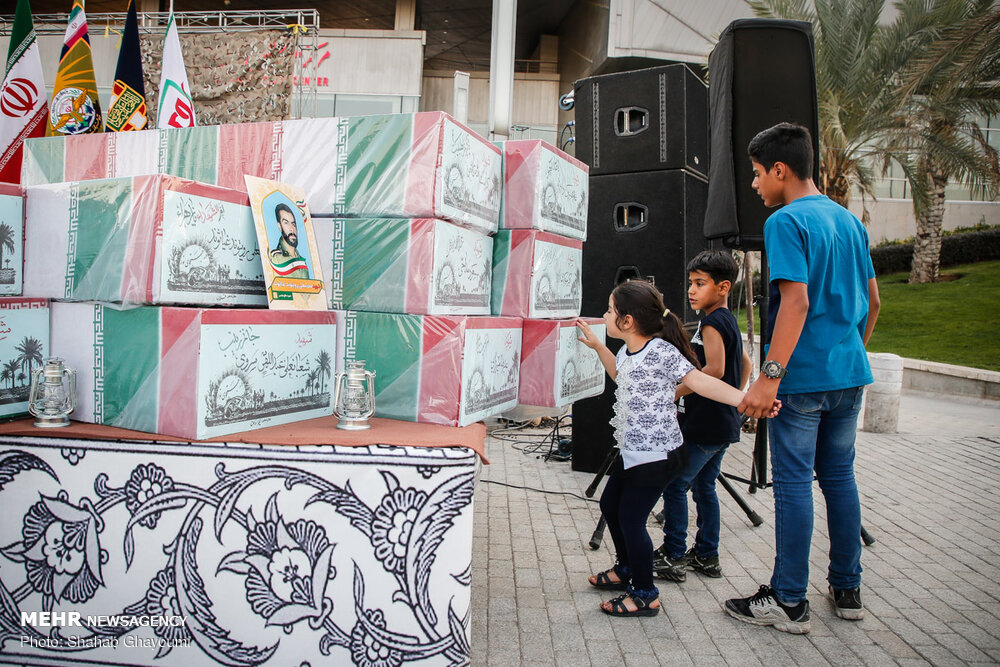 گزارش تصویری: مراسم وداع با پیکرهای مطهر ۱۵۰ شهید تازه‌ تفحص‌ شده دفاع مقدس