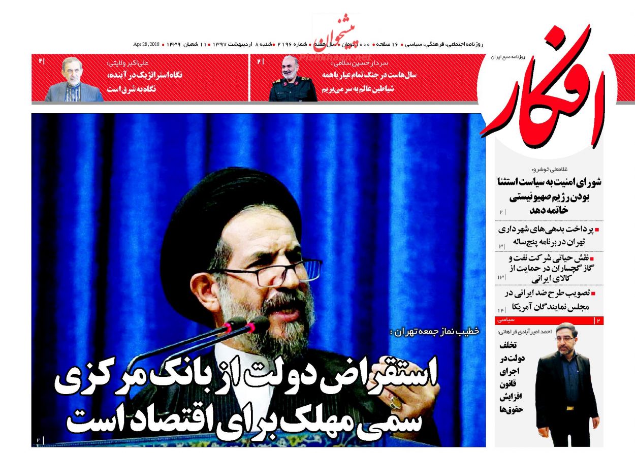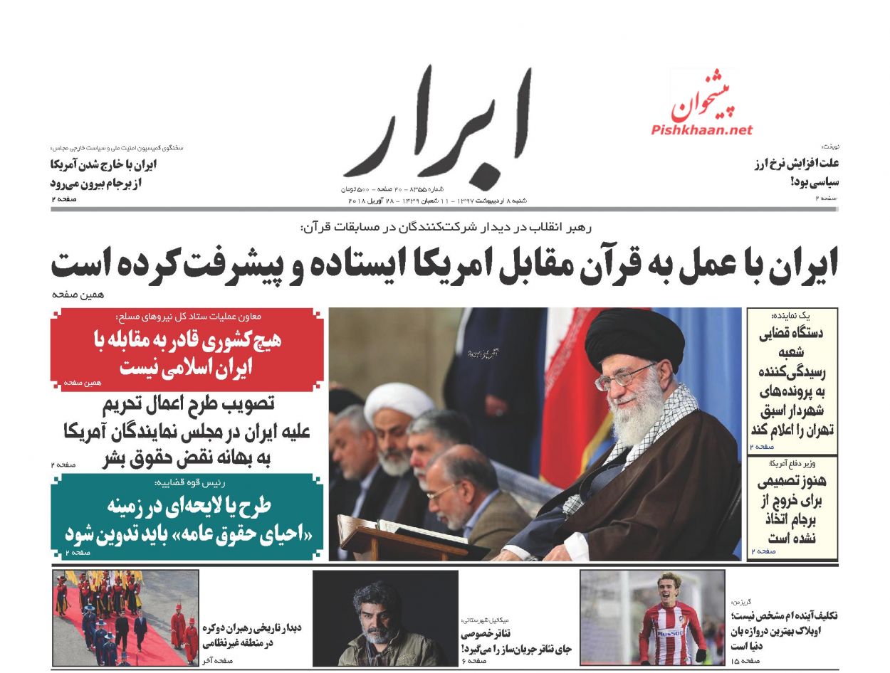 دیدارنیوز - صفحه اول روزنامه‌های مهم کشور / شنبه 8 اردیبهشت 97 را در زیر می بینید