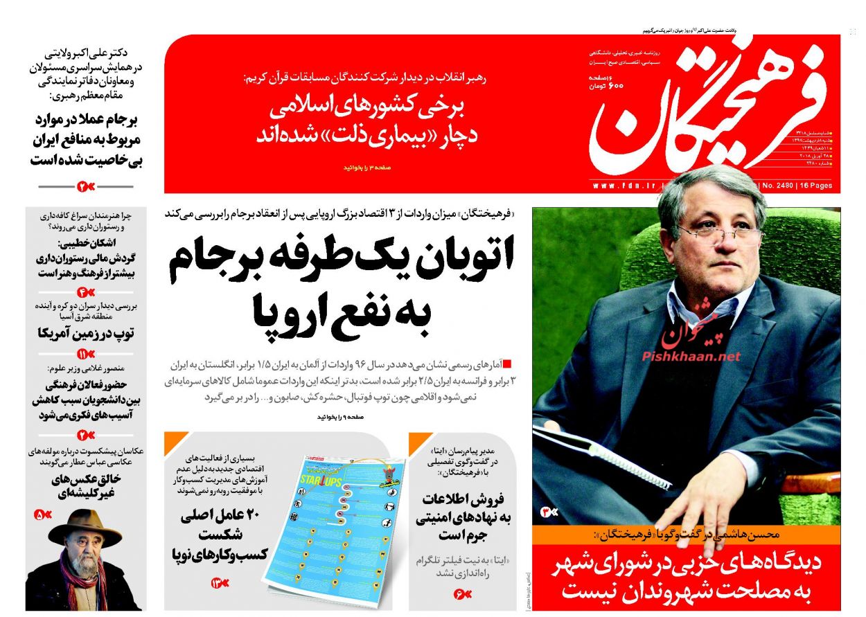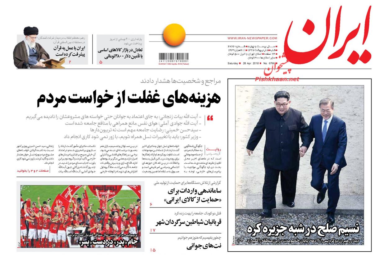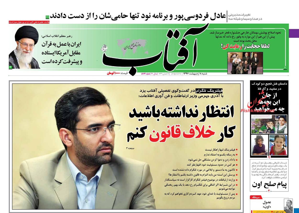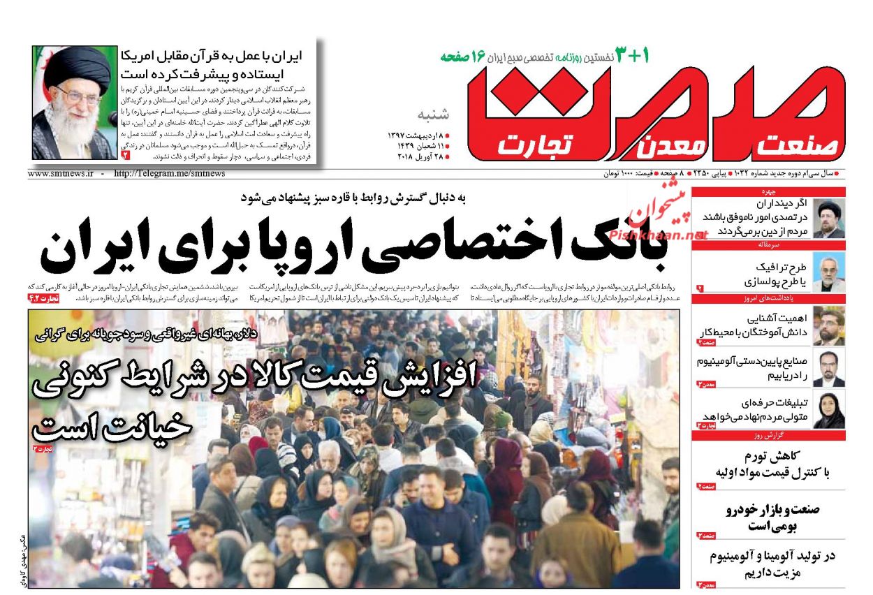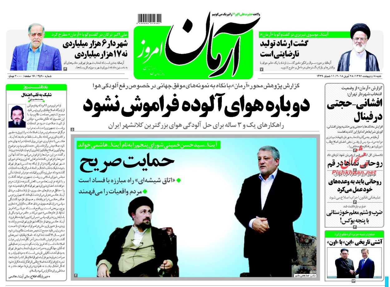 صفحه اول روزنامه‌های مهم کشور / شنبه 8 اردیبهشت