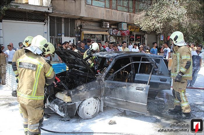 گزارش تصویری / پرایدی که در حال حرکت در تهران جزغاله شد!