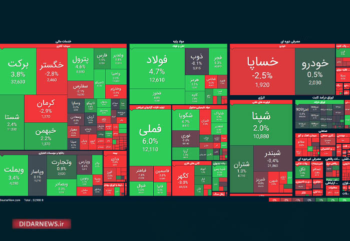 نمادهای «خساپا»، «شپنا»، «خودرو»، «برکت»، «فملی»، «شستا» و «خگستر» در گروه پرتراکنشهای بورس و نمادهای «کرمان»، «ذوب»، «شگویا»، «بپیوند»، «آریا»، «بگیلان» و «پیزد» در گروه پرتراکنشهای فرابورس قرار گرفتند.